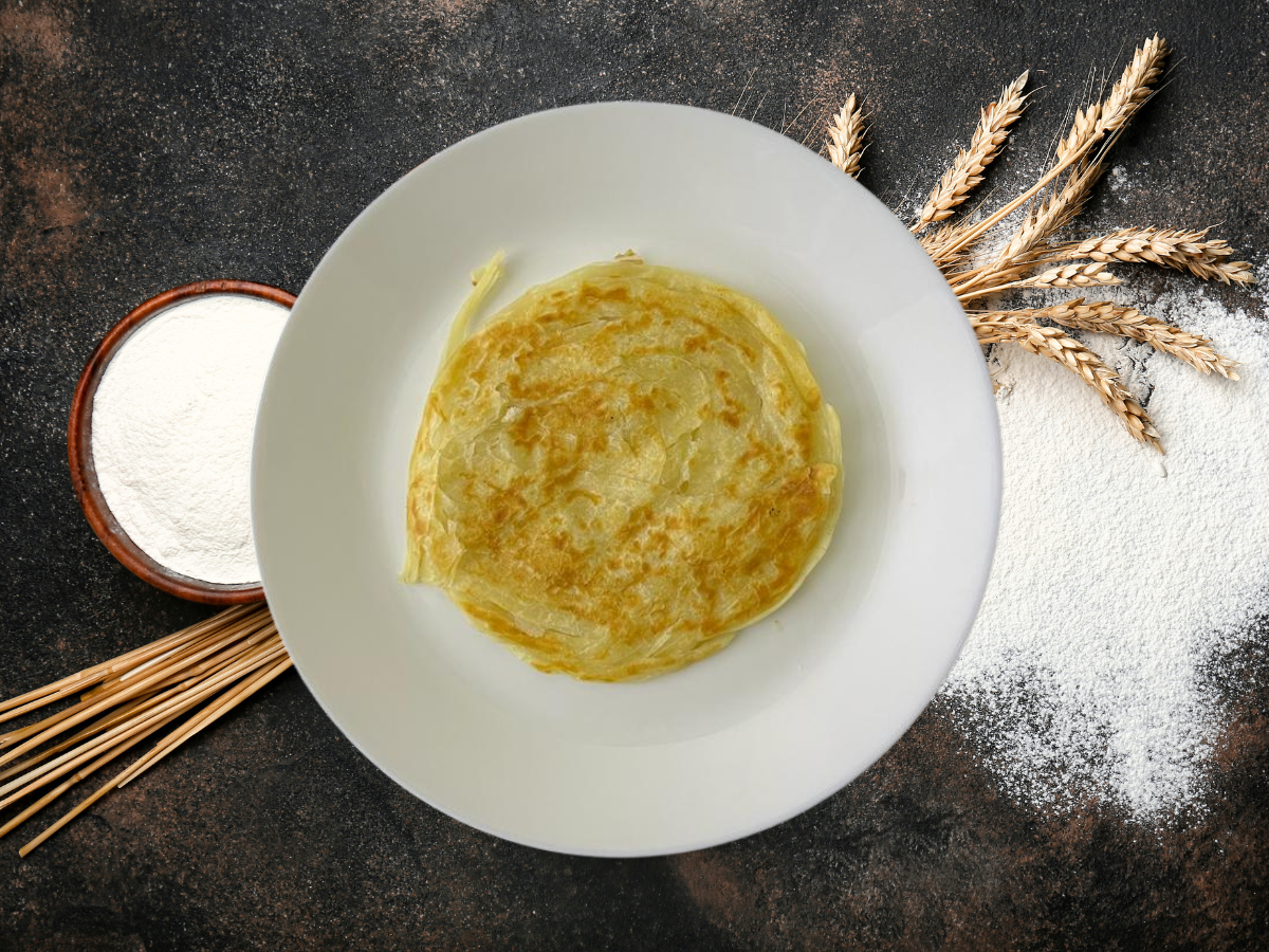 Flaky, layered Indian flatbread made from wheat, featuring a crispy exterior and soft interior.